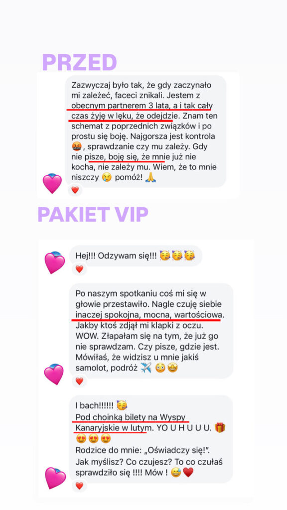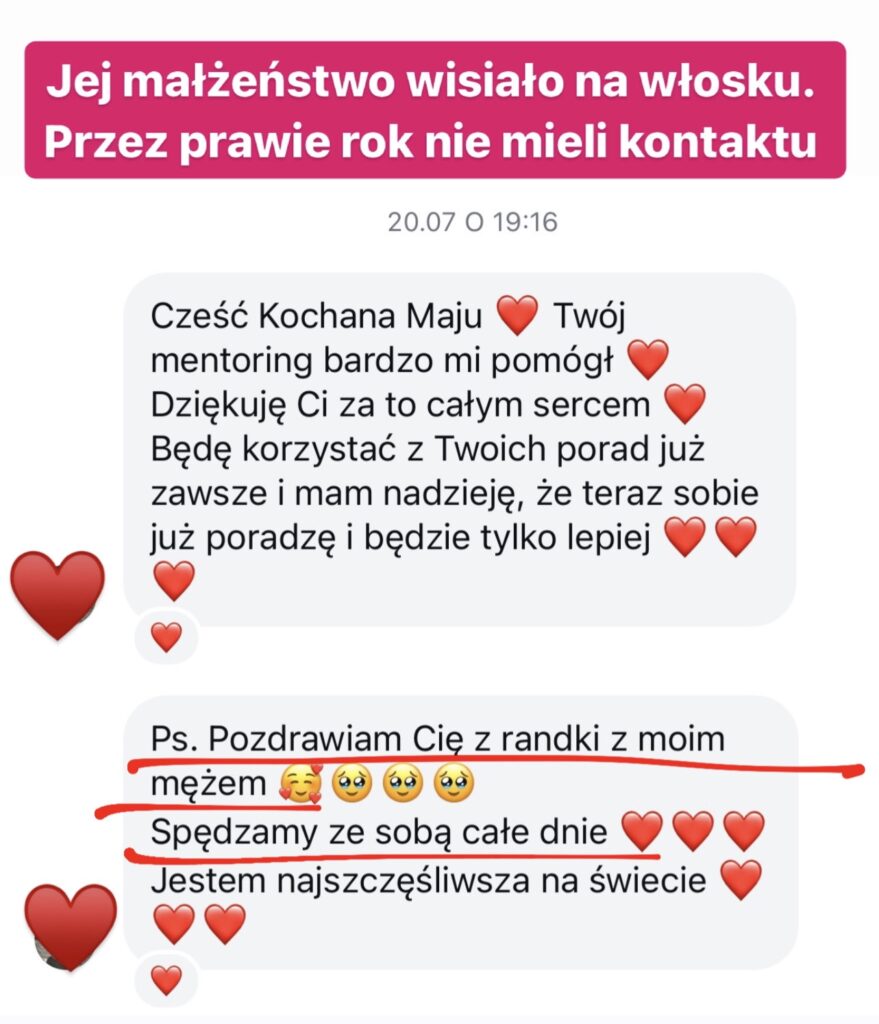 I właśnie dlatego z własnego doświadczenia uczę dziś innych kobiet, jak ustawiać swoje pole tak, aby nie zabiegać o miłość, tylko ją przyciągać. Nie naprawiać mężczyzn, tylko zmieniać energię, która przyciąga odpowiednich.